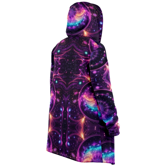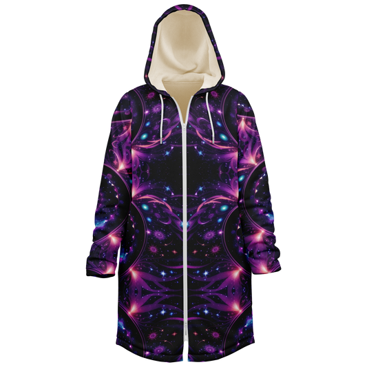 Celestial Harmony: Adorn Yourself with Cloak Hoodie in Purple Galaxy Mandala